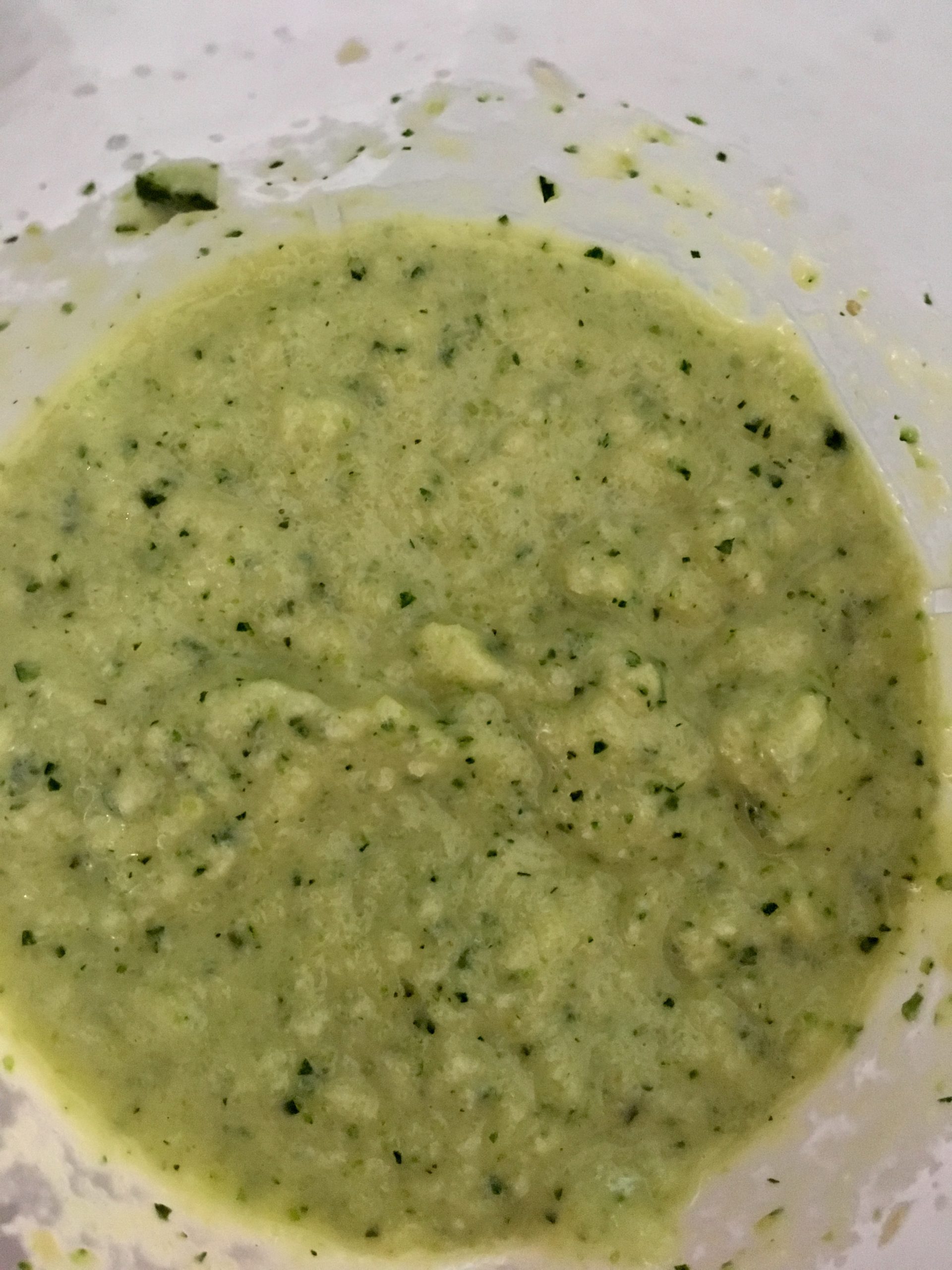 3. Czosnek, migdały i połowę podsmażonych cukini blendujemy z dodatkiem oliwy z oliwek i szczypty soli