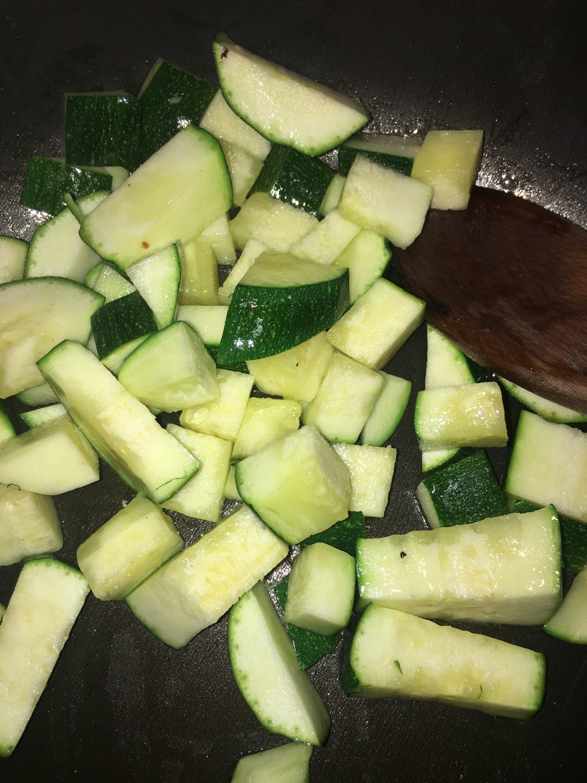 2. Cukinię kroicie w kosteczkę i podsmażacie na oliwie z oliwek do miękkości, ok 10 min
